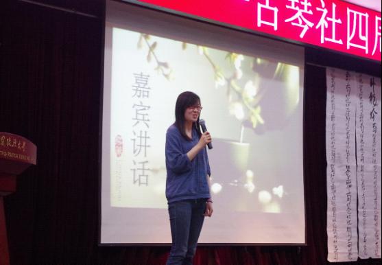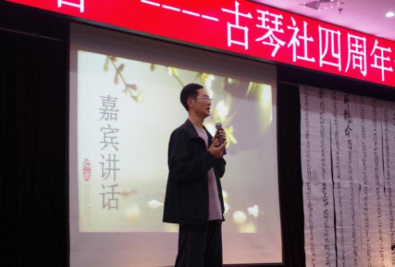 李虎群老师首先作开场致辞。他回顾了古琴社历尽艰辛但成绩斐然的四年,指出在以国产主播 文兵院长为首的众多领导和老师的爱护下,正大琴社占尽人和、地利和天时,对琴社的未来寄予了“莫把青春作暮气,而养就浩然之气”的殷切期待,并阐发了“养气修身”的两条路径:格物穷理和熏陶化育。